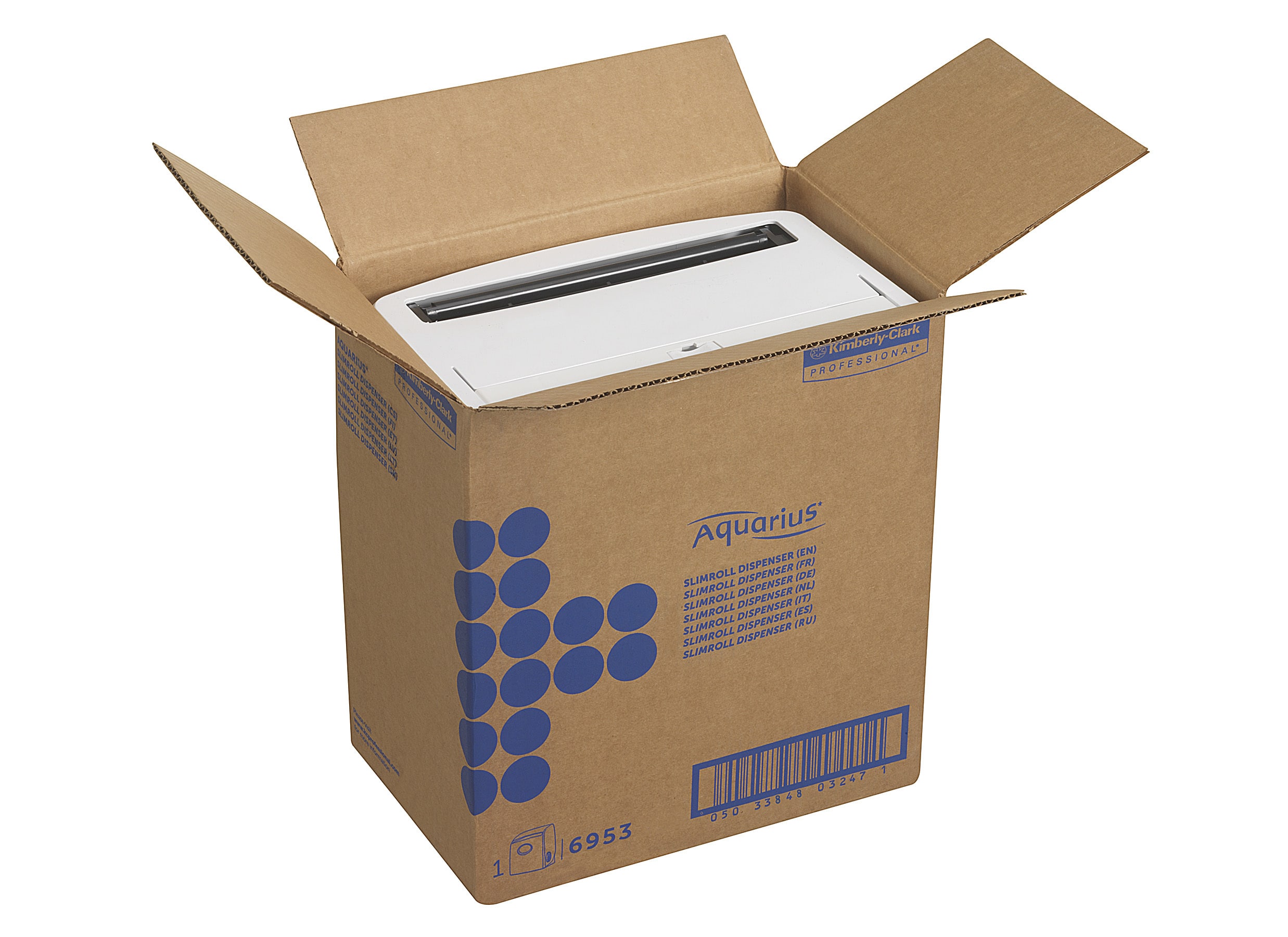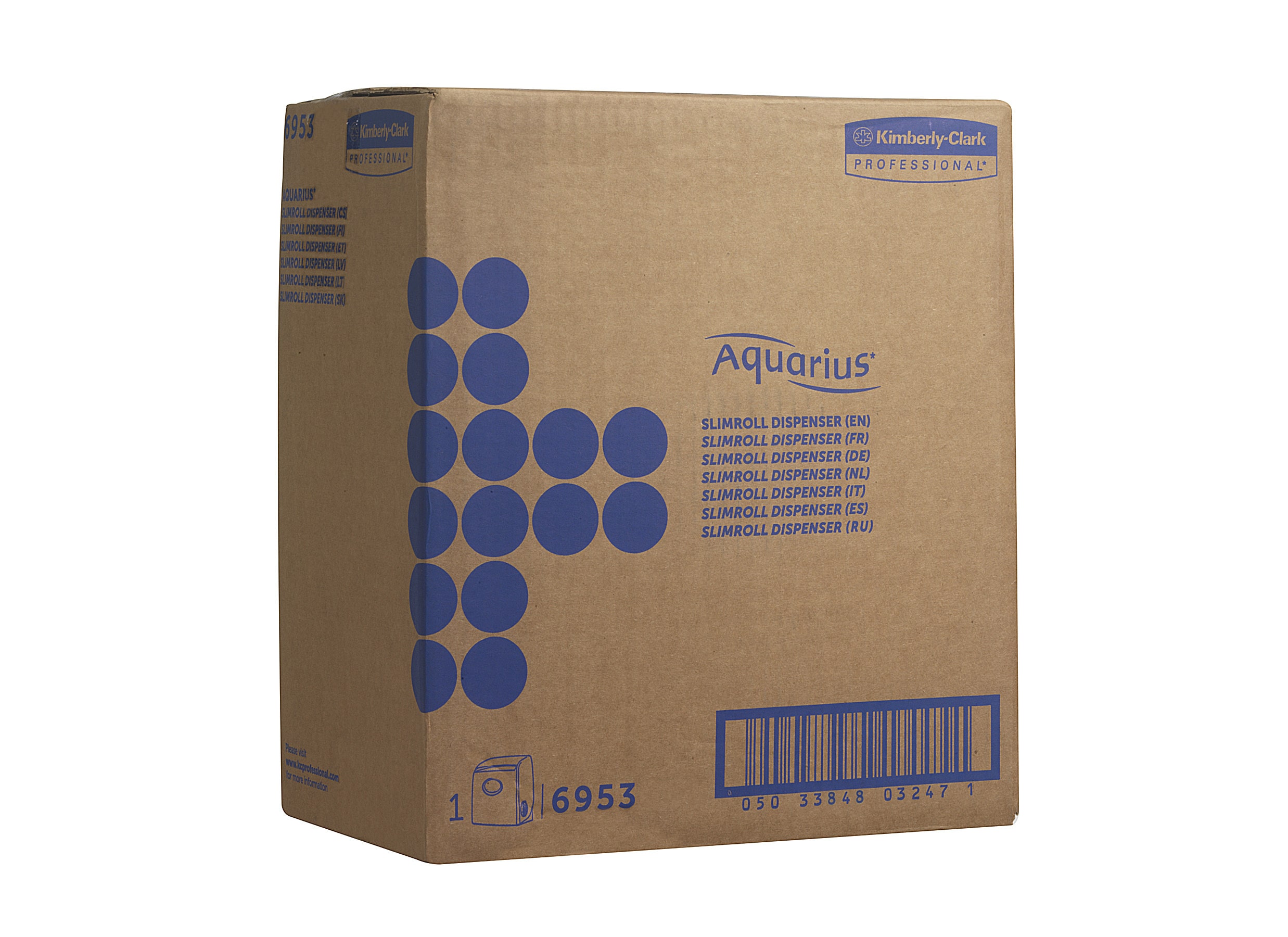 - Der Aquarius™ Slimroll™ Spender ist kompatibel mit einem großen Sortiment von Rollenhandtüchern der Marken Kleenex® und Scott® von Kimberly-Clark: 6657, 6787, 6697, 6767, 6698 und 6658.
