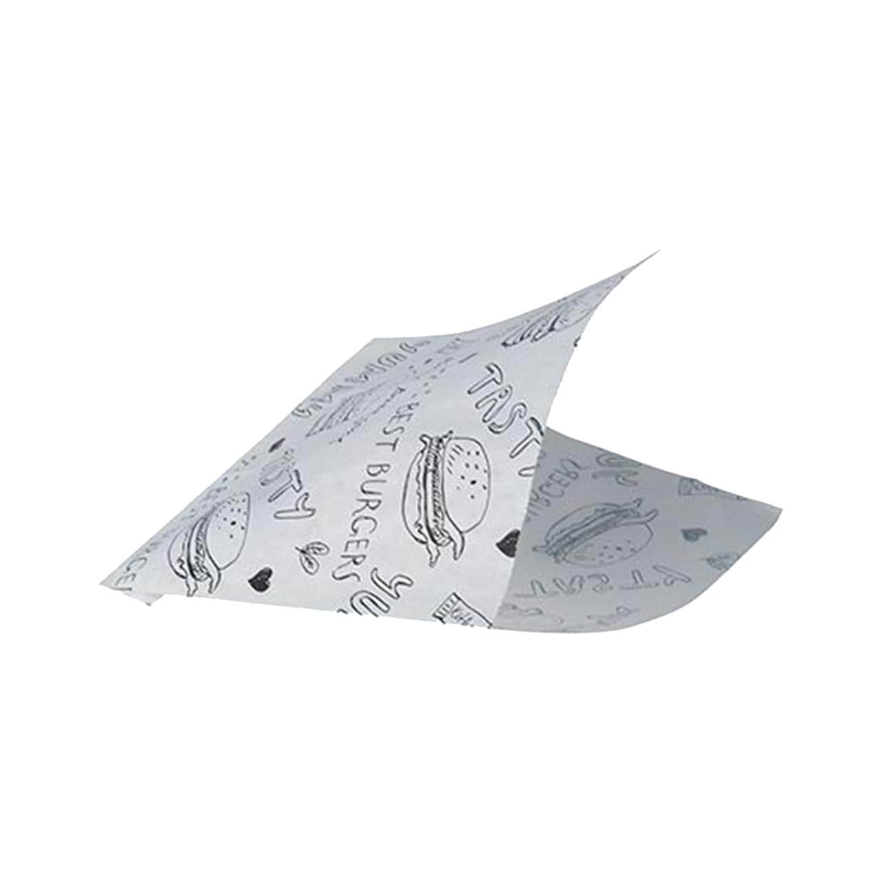 Weiße Hamburger-Tüten mit modernem Burger-Design - fettdicht - Material: Pergament-Ersatz - Abmessungen: 13,5 x 13 cm - an zwei Seiten offen mehr erfahren