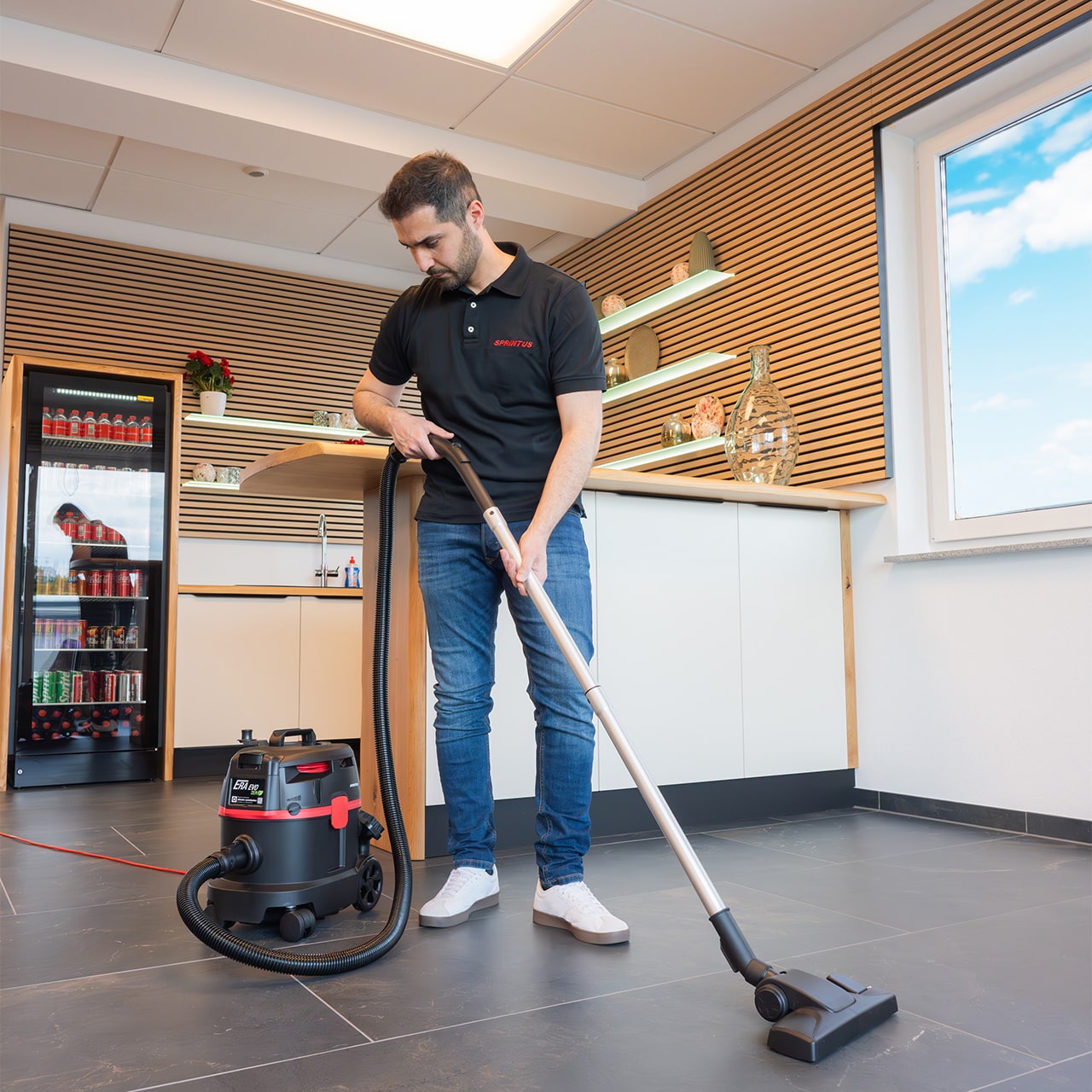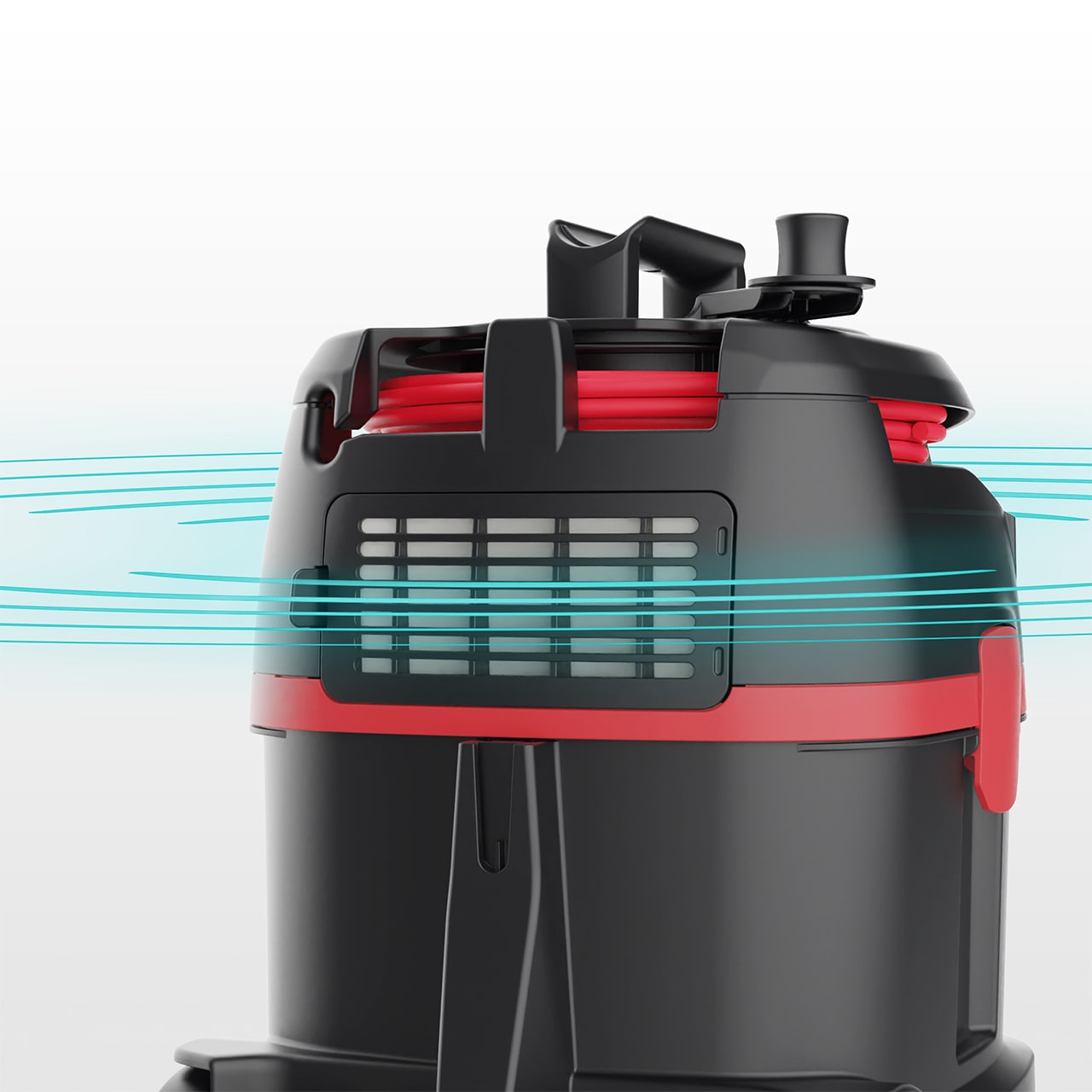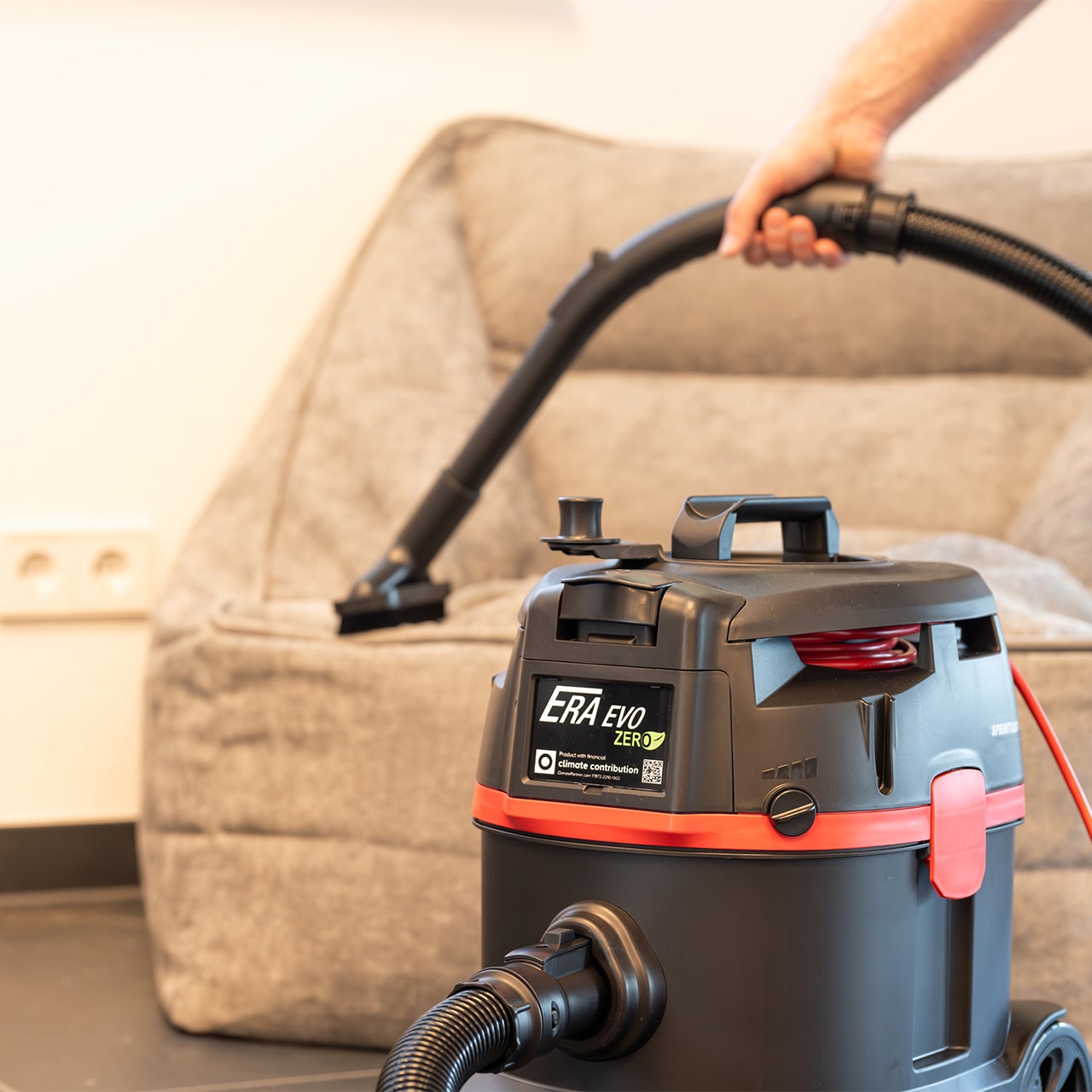 Der leise ERA EVO ZERO ist vielseitig einsetzbar, kompakt, zuverlässig und ein wahres Kraftpaket. Die integrierte Kabelaufwicklung ermöglicht das sichere und praktische Verstauen des signalroten 10 m Netzkabels.