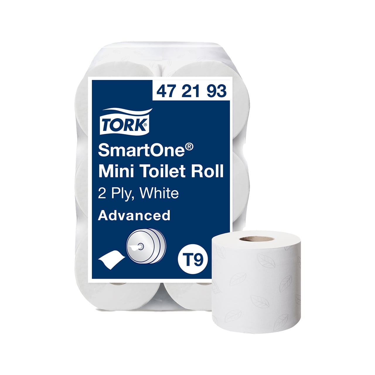 Tork SmartOne® Mini Toilettenpapier Weiß T9: Leere Spender und Verstopfungen können die Wartung des Waschraums erschweren. Die Tork SmartOne® Mini Rolle mit rasch zersetzbarem Toilettenpapier reduziert den Wartungsaufwand. Die SmartCore® Hülse ist l… mehr erfahren