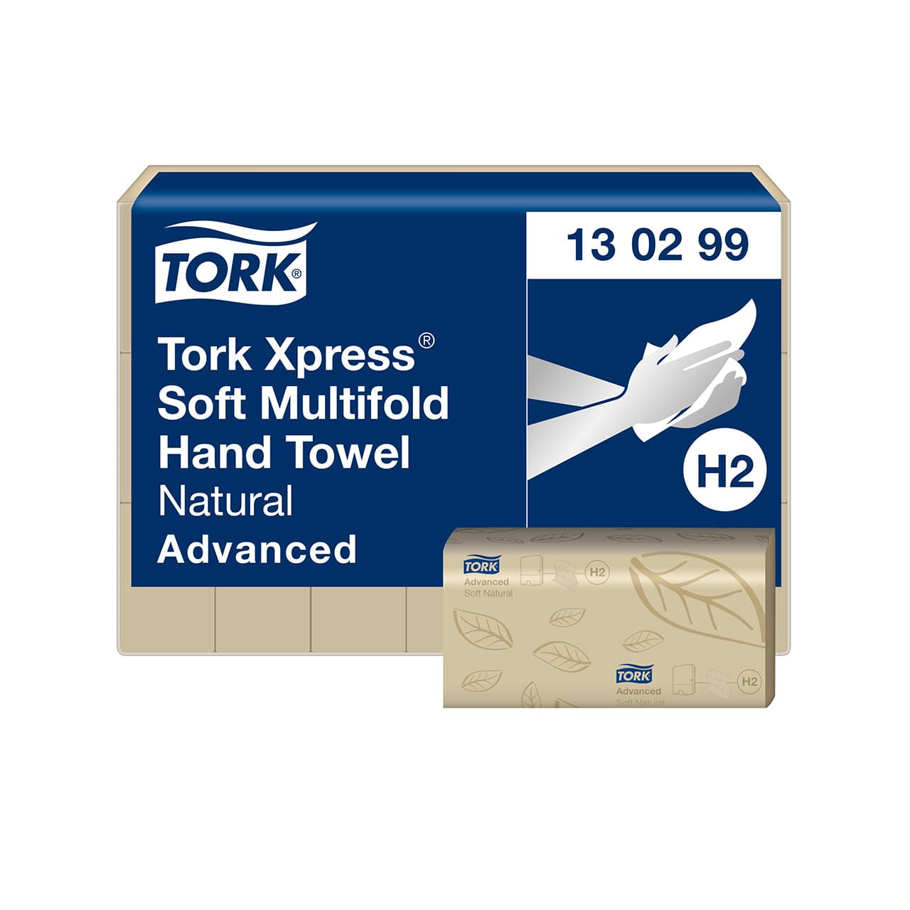 Tork Xpress® weiche Multifold-Handtücher Natur H2: Diese Papierhandtücher sind reißfest und sparsam im Verbrauch. Ihr weiches Design, die Advanced-Qualität und der attraktive Prägedruck beeindrucken die Gäste. Die hellbraune Farbe entsteht durch die Verwendung von recycelten Kartonagen. Es wurden keine Farbstoffe zugesetzt. Die geringere Umweltbelastung in Verbindung mit hohem Komfort macht die Papierhandtücher zu einer hervorragenden Lösung für Ihren Waschraum.