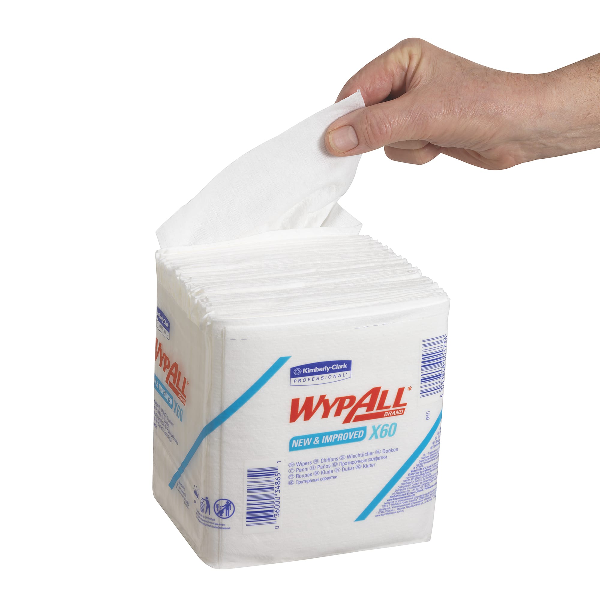 - Jede Packung WypAll® X60 General Clean™ viertelgefaltete Reinigungstücher enthält 76 weiße Tücher
