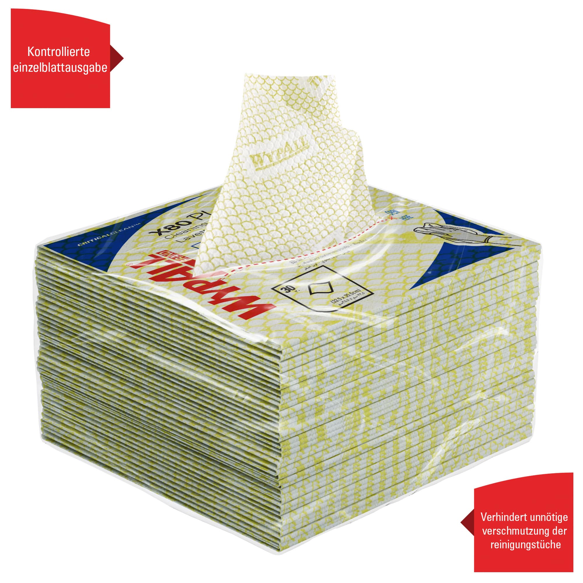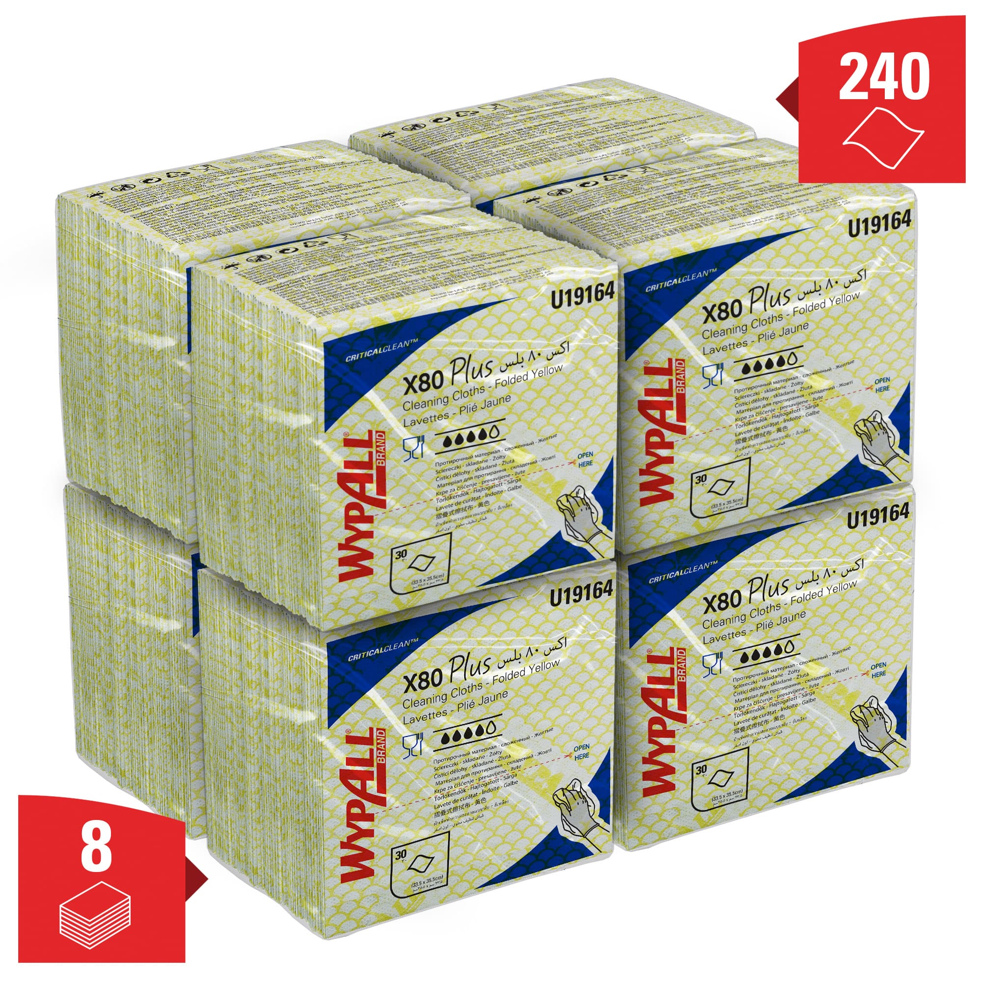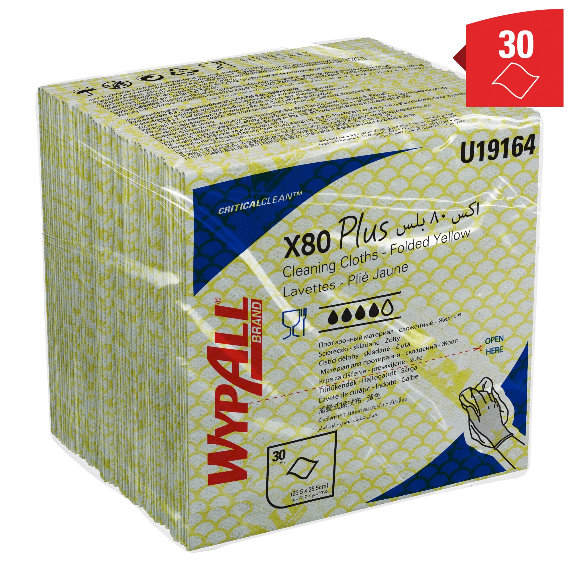 - Jede Packung mit gelben WypAll® X80 Plus Critical Clean™ Tüchern enthält 30 gelbe, viertelgefaltete farbcodierte Reinigungstücher