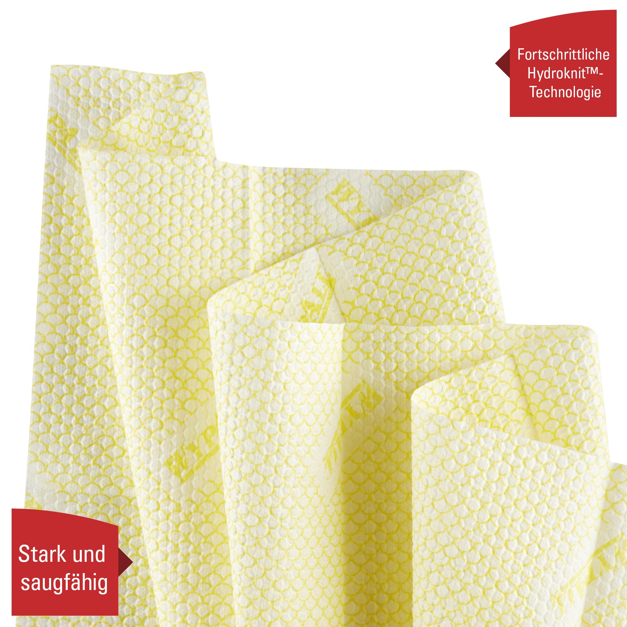- Dank der fortschrittlichen Hydroknit™-Technologie sind diese gelben Reinigungstücher robust, langlebig und reißfest