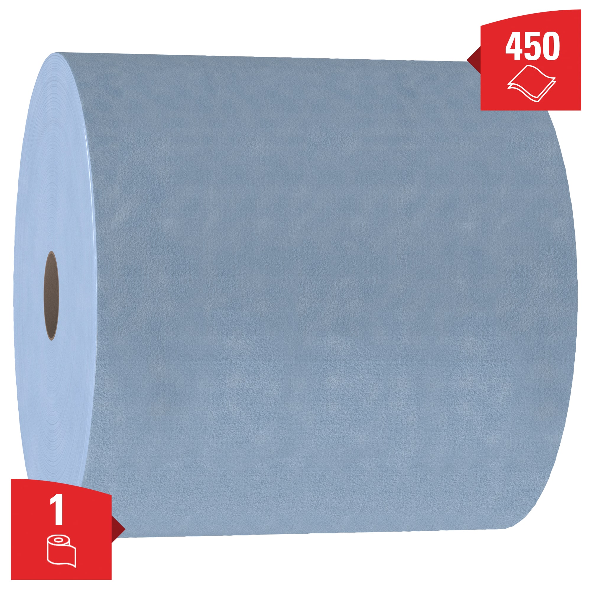 - 1 gr. leistungsstarke Rolle mit 450 blauen, 2-lagigen Tüchern (Gesamtanzahl 450)